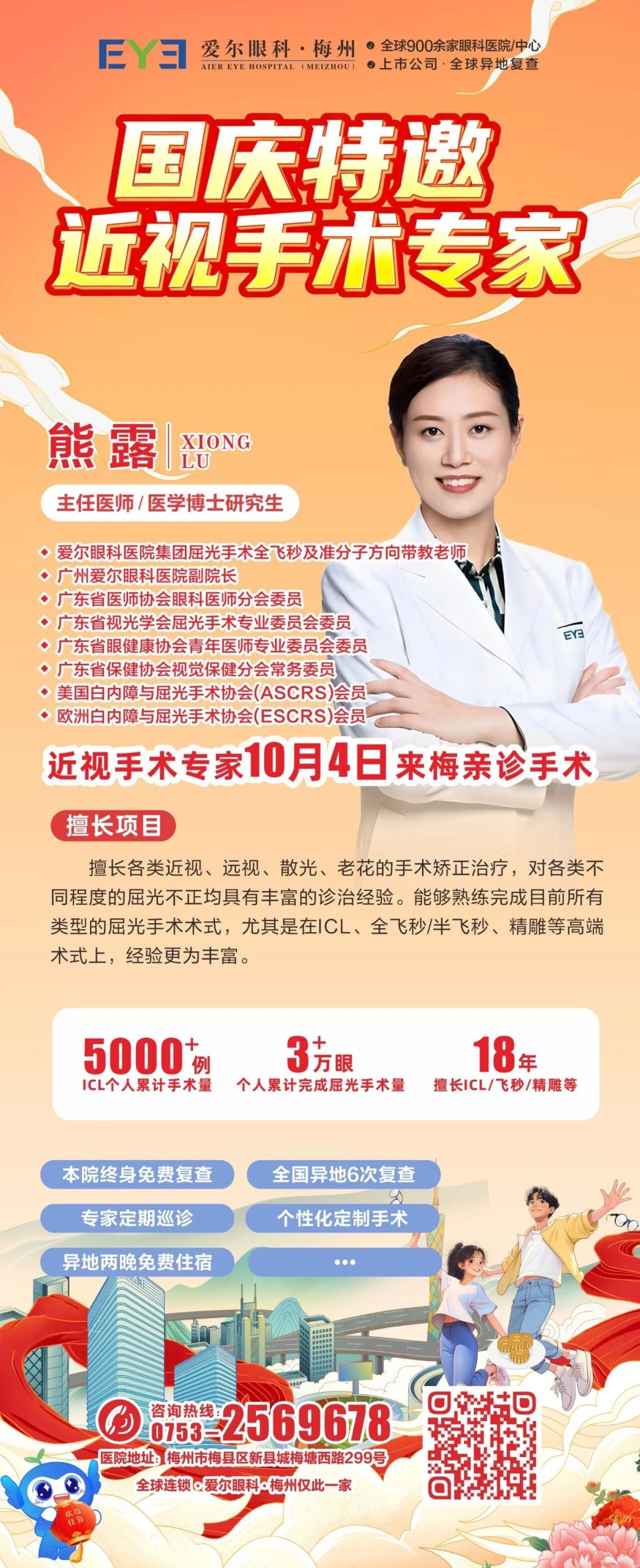 大咖驾到丨10月4日,近视手术专家熊露主任来梅州啦~