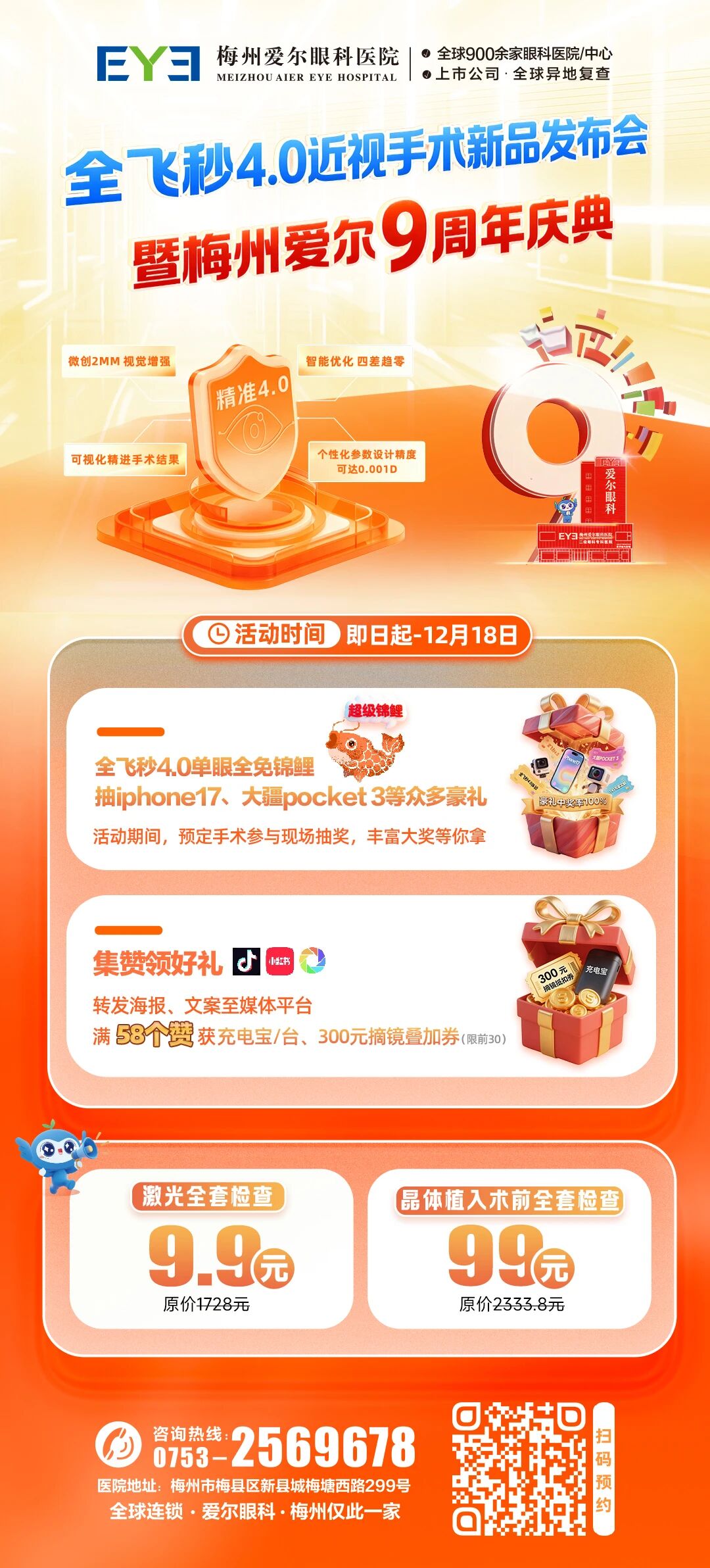 梅州爱尔眼科放大招!全飞秒 4.0+9 周年庆典福利拉满