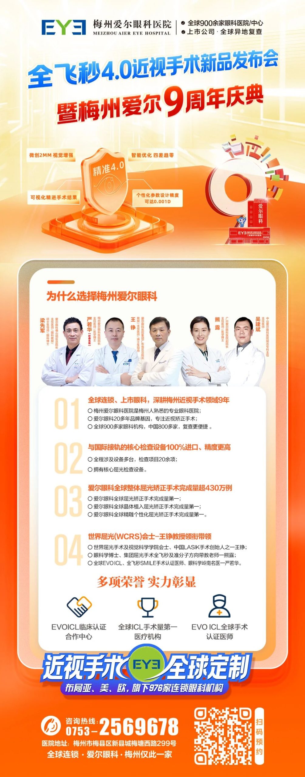 全飞秒 4.0 近视手术新品发布会暨梅州爱尔 9 周年庆典火热开启🔥